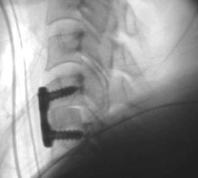 X-ray of the neck showing plate and screws in place after removal of the disc