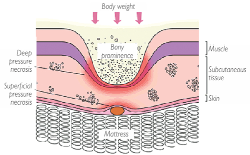Can’t Handle the PressureKristine Reesman, DO Skin is our body’s largest organ. Unfortunately, like other organ systems, it sometimes fails. All too often following a period of significant illness or extended weakness, skin breakdown ensues. Prolonged periods in bed, or even sitting in a chair, can result in injury to our skin and underlying tissues. Normally, blood carrying oxygen and nutrients continually circulates through our tissues. When a person is confined to a bed or chair due to illness or debility, the tissue over boney areas such as the hips or tailbone experiences reduced blood flow. The circulation is literally pinched off because of this pressure and the result can be skin breakdown or “pressure ulcer”. Pressure ulcers are sometimes referred to as “bedsores” because they often are associated with prolonged bed rest.